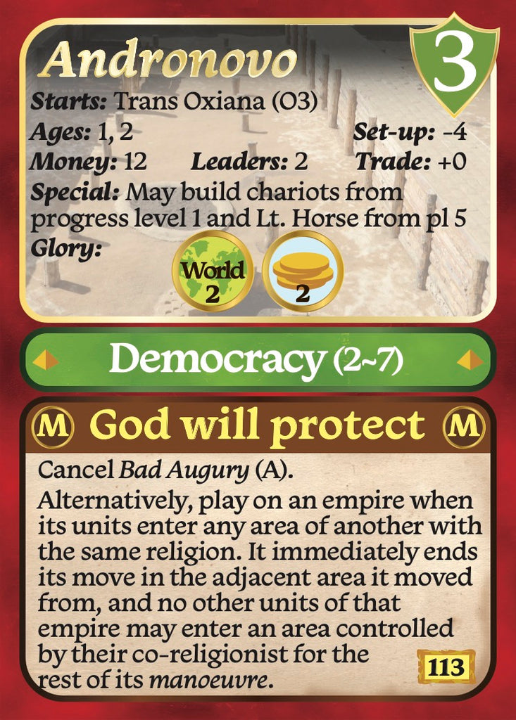 Ancients & Kingdoms Expansion - introduces 11 new ancient empires from the Elamites and Beaker people to the Xiongnu and Scythian/Sarmatians.