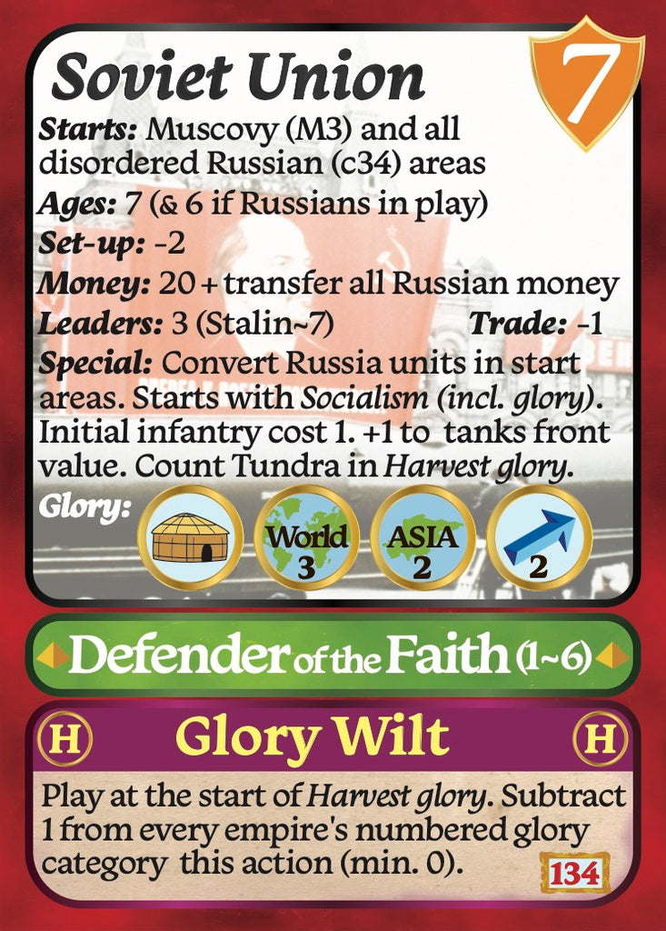 Modern Expansion - This adds the empire units for the 7th 7 Ages player as well as 11 more modern empires from the Brazilian and South Africans to the Soviet Union and New Zealanders. It includes all the leaders for the empires and the markers for the 7th player.