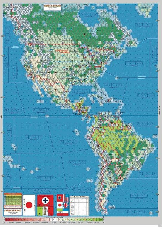 America in Flames is a complete game. It allows 2-5 players to fight for control of the Americas. Germany, Italy and Japan must attempt the largest invasion in history. Pitted against them are the USA and the remnants of the Commonwealth, both desperately attempting to turn back the swelling tide of fascism.