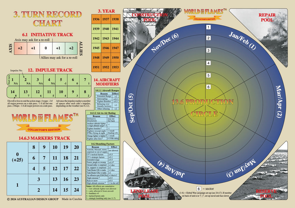 But wait there's more, all owners of the World in Flames Collector's edition Classic or Deluxe game receive a 40% discount off the recommended retail price (Australian$79) of the World in Flames Collector's edition (Virtual) companion (includes high quality images of all the counters, maps and rules graphics and text as well as all the technical data and production specs on all the combat aircraft and naval units of world war II), available now.
