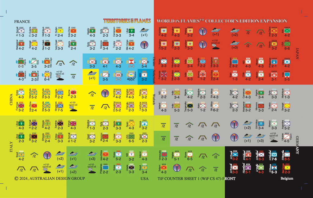 The Deluxe expansion set gathers all 4 World in Flames Collector's edition expansion kits into one bundle for one affordable price. If you bought the World in Flames Collector's edition Classic game, this expansion set gives you everything you need to upgrade to Deluxe. Please note that the images on this page are low resolution (for faster page upload). The components in the game are all high resolution.