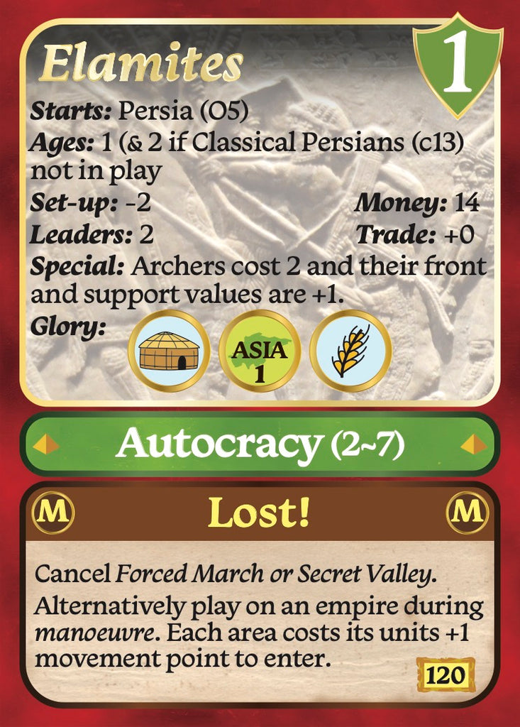 The Ancients & Kingdoms Expansion introduces 11 new ancient empires from the Elamites and Beaker people to the Xiongnu and Scythian/Sarmatians.