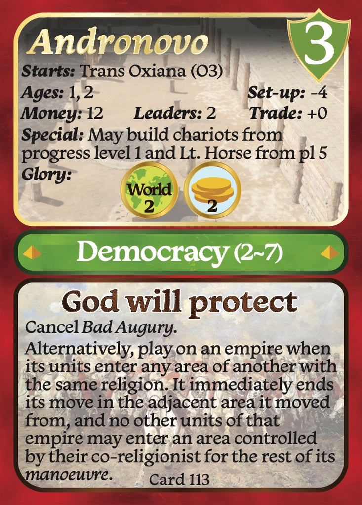 Ancients & Kingdoms Expansion - introduces 11 new ancient empires from the Elamites and Beaker people to the Xiongnu and Scythian/Sarmatians.