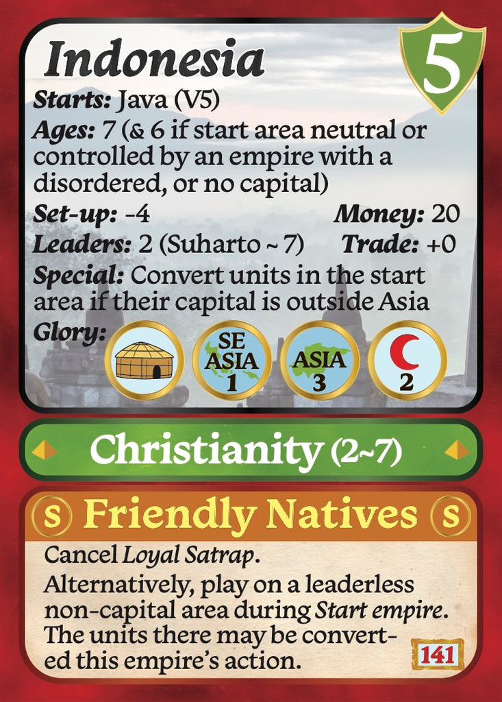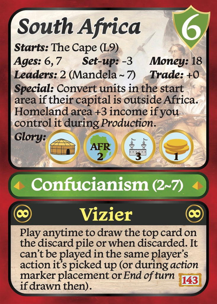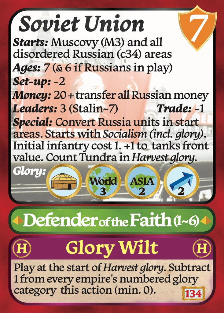 The Modern Expansion adds the empire units for the 7th 7 Ages player as well as 11 more modern empires from the Brazilian and South Africans to the Soviet Union and New Zealanders. It includes all the leaders for the empires and the markers for the 7th player.