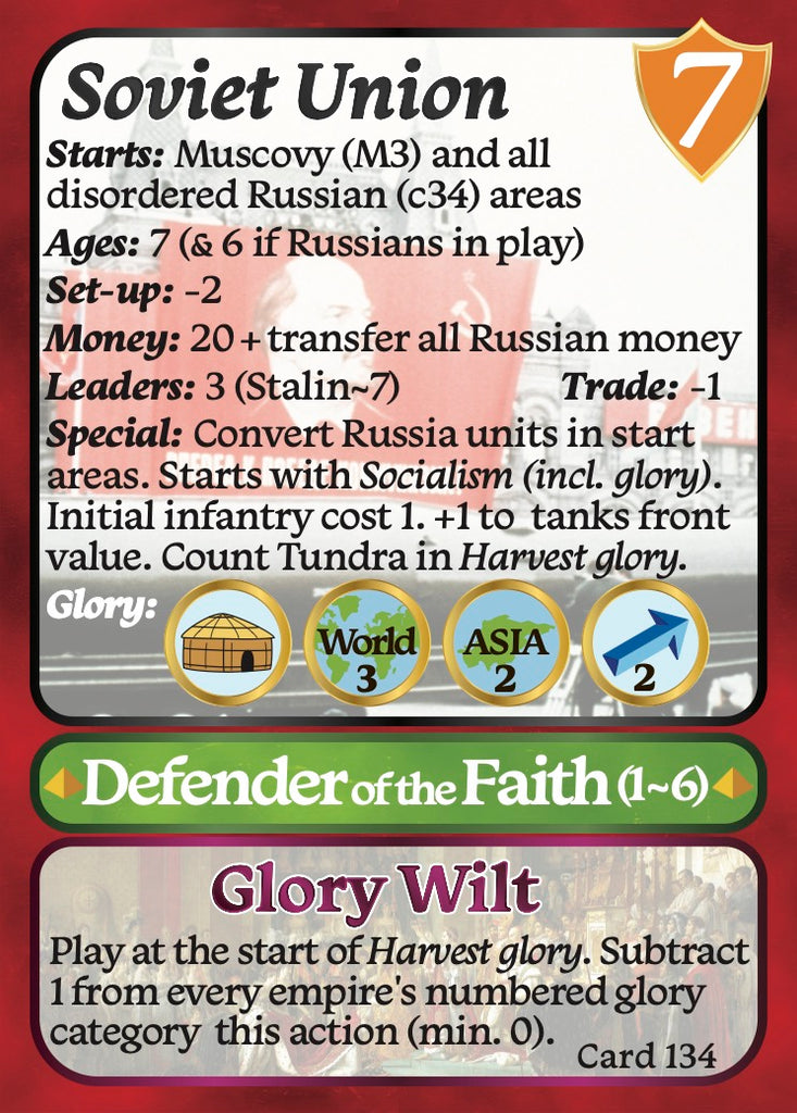 Modern Expansion - This adds the empire units for the 7th 7 Ages player as well as 11 more modern empires from the Brazilian and South Africans to the Soviet Union and New Zealanders. It includes all the leaders for the empires and the markers for the 7th player.